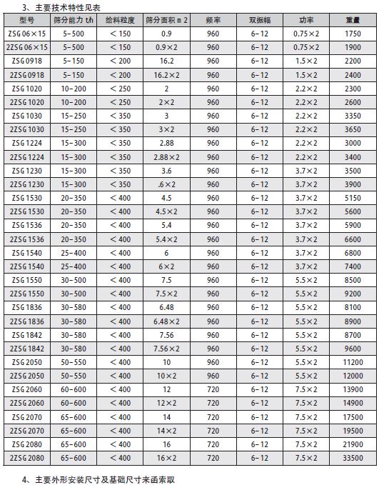 ?。?)敝開型(ZSG-□×□)為座式,無防塵蓋板,結構,用于大篩分能力、無粉塵污染的顆粒物料的篩分作業(yè)